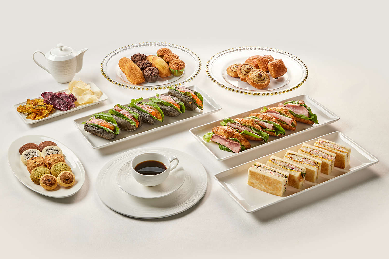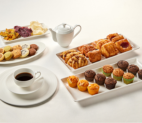 10인기준, 커피 포함 쿠키, 머핀, 패스트리, 야채칩, 마들렌, 훈제연어 샌드위치, 크랩 샌드위치, 햄크로와상 샌드위치 150,000원