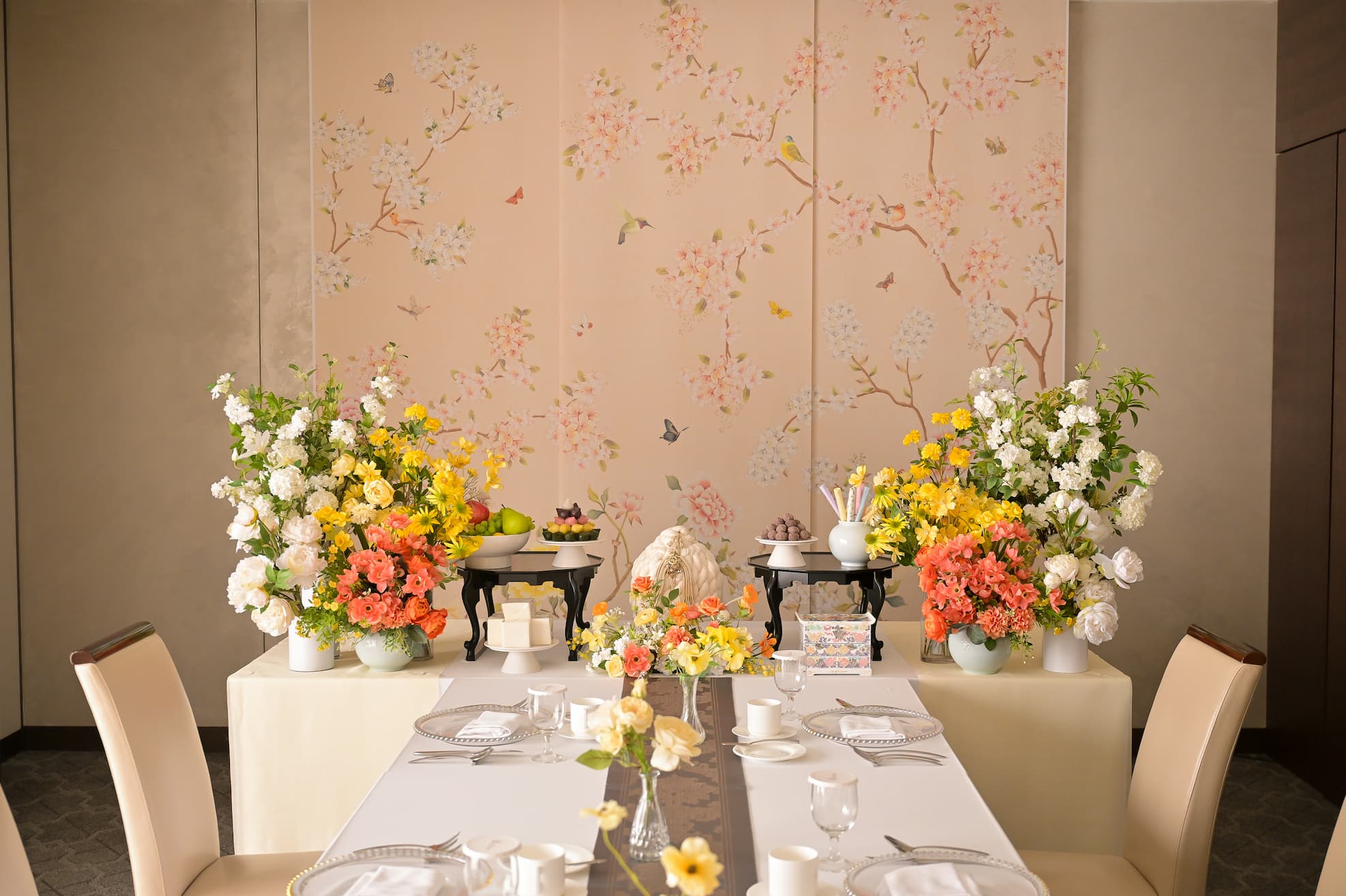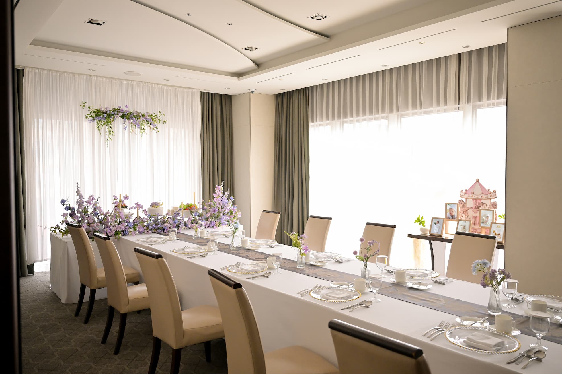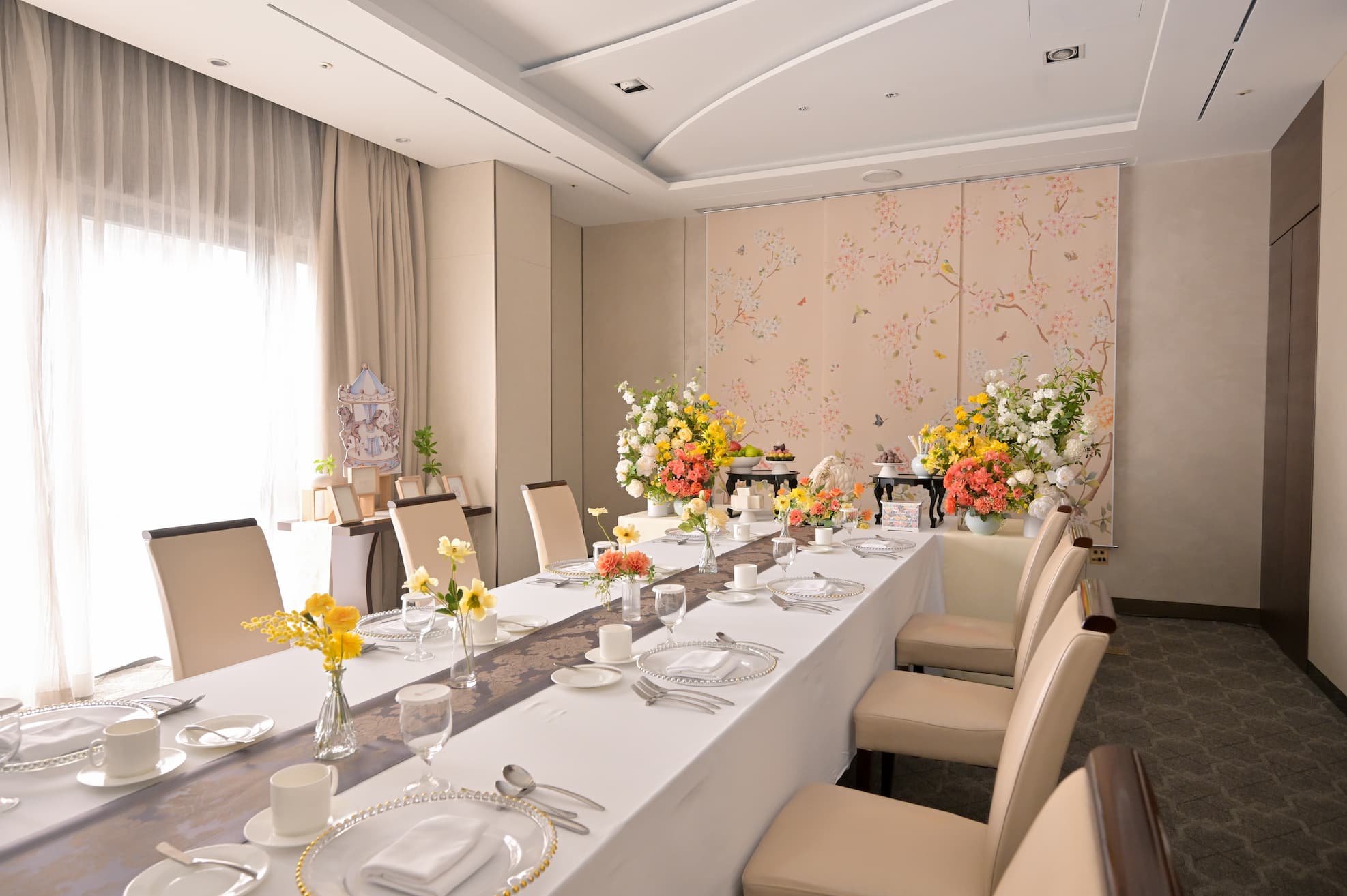밝고 화사한 분위기 속에서 가족이 함께 어우러지는 연회 공간입니다. 여유로운 공간 구성과 부드러운 조명이 따뜻하고 경쾌한 모임을 완성합니다. 정갈한 다이닝과 세심한 서비스가 웃음이 가득한 가족연의 순간을 더욱 빛나게 합니다.