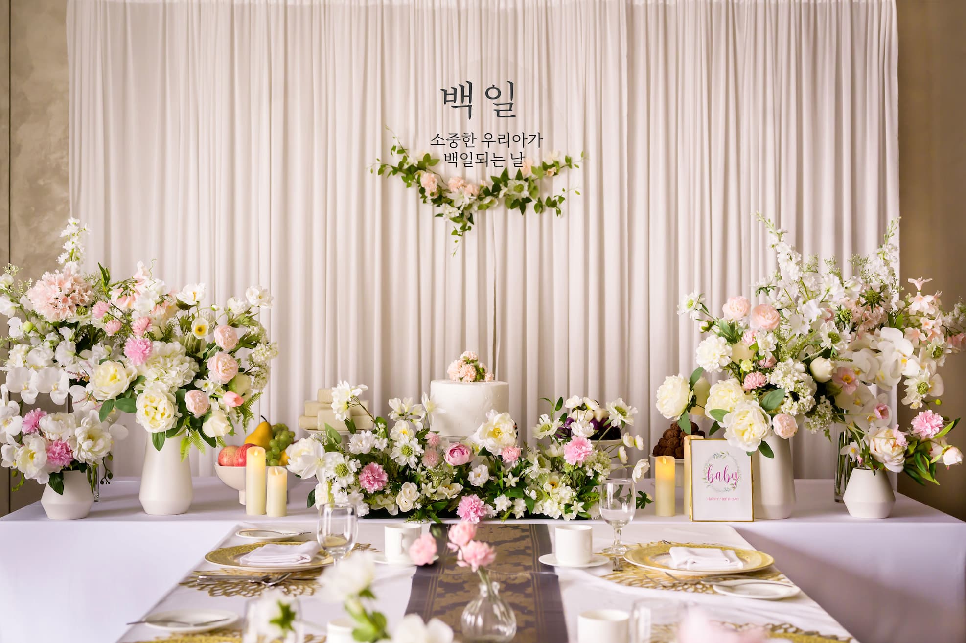 백일의 의미를 담아 사랑과 감사의 마음을 나누며 은은한 연출과 정갈한 상차림으로 소중한 시작을 아름답게 완성합니다.