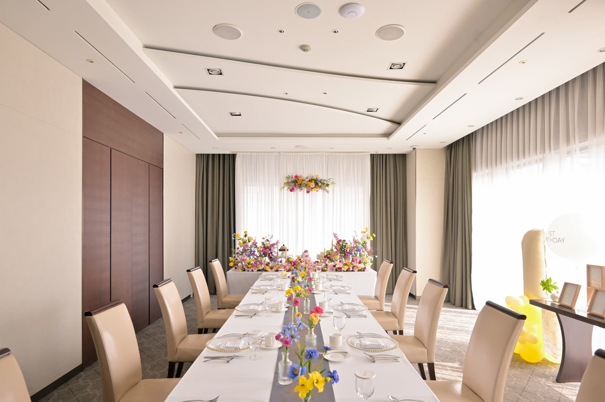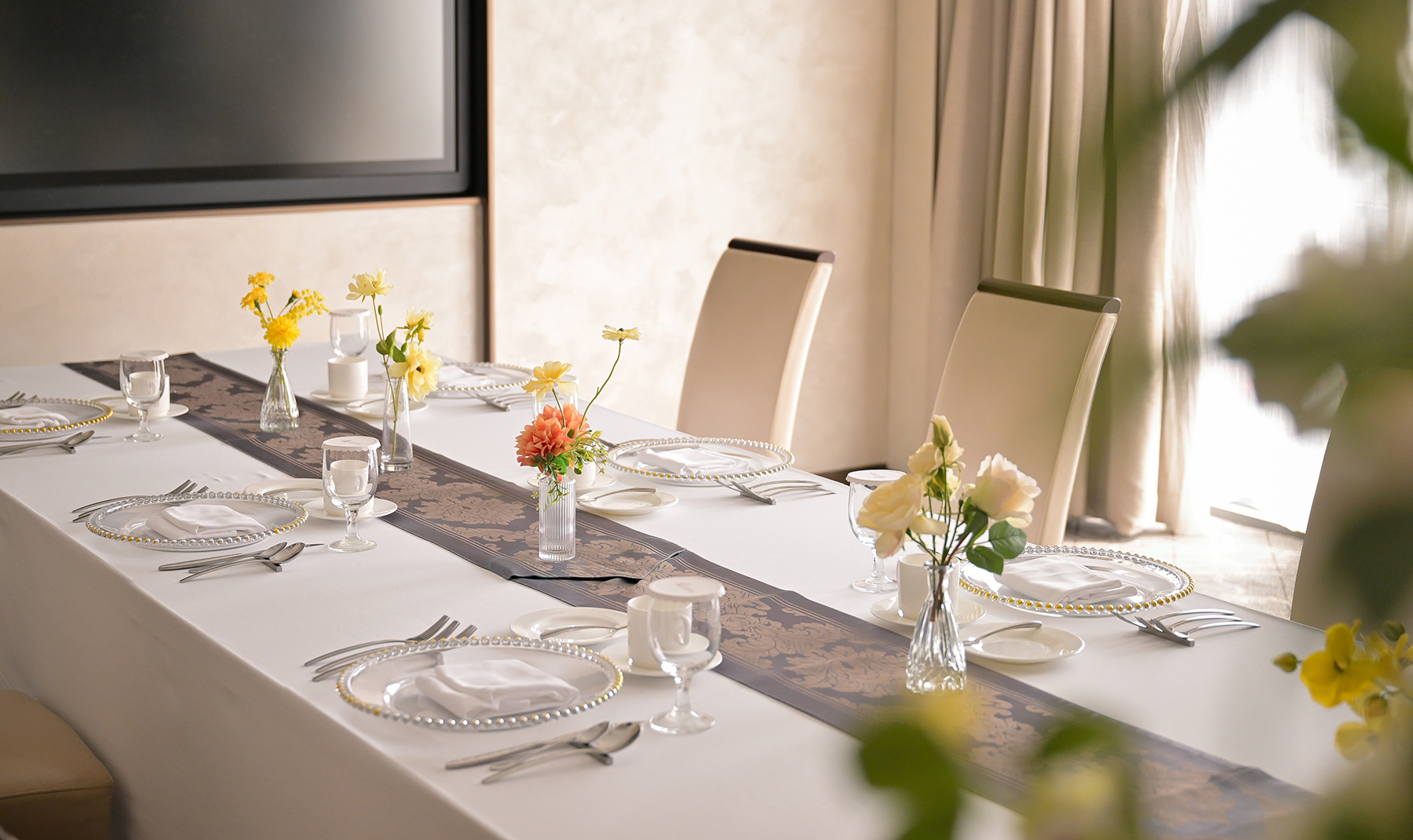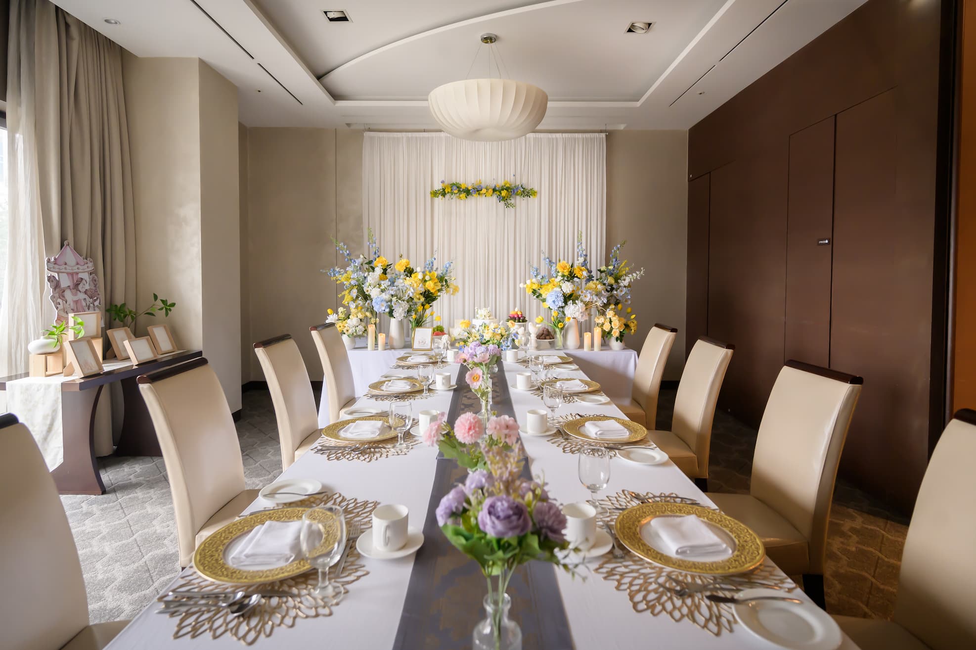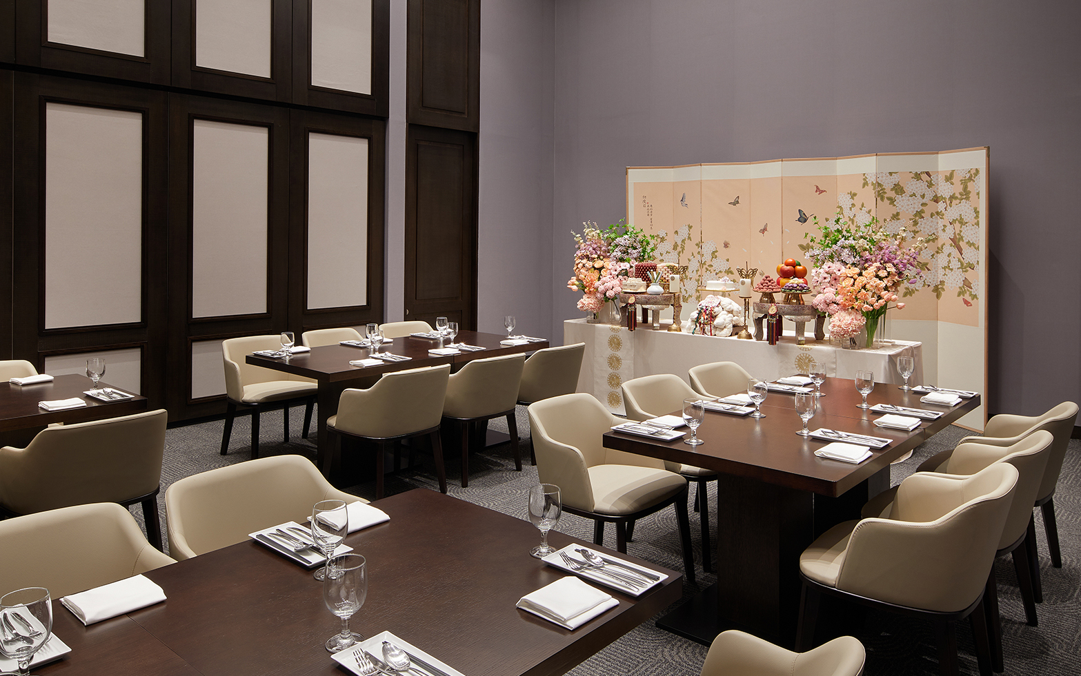 밝고 화사한 분위기 속에서 가족이 함께 어우러지는 연회 공간입니다. 여유로운 공간 구성과 부드러운 조명이 따뜻하고 경쾌한 모임을 완성합니다. 정갈한 다이닝과 세심한 서비스가 웃음이 가득한 가족연의 순간을 더욱 빛나게 합니다.